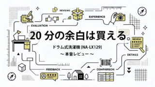 パナソニックのドラム式洗濯機NA-LX129を導入して、激務時代の「家事の絶望」から解放された本音レビュー。1回31円の電気代検証や、スーツのシワとり、猫の毛対策まで「働く主夫」目線で徹底解説。20代の忙しいあなたにこそ伝えたい、人生の余白の作り方。